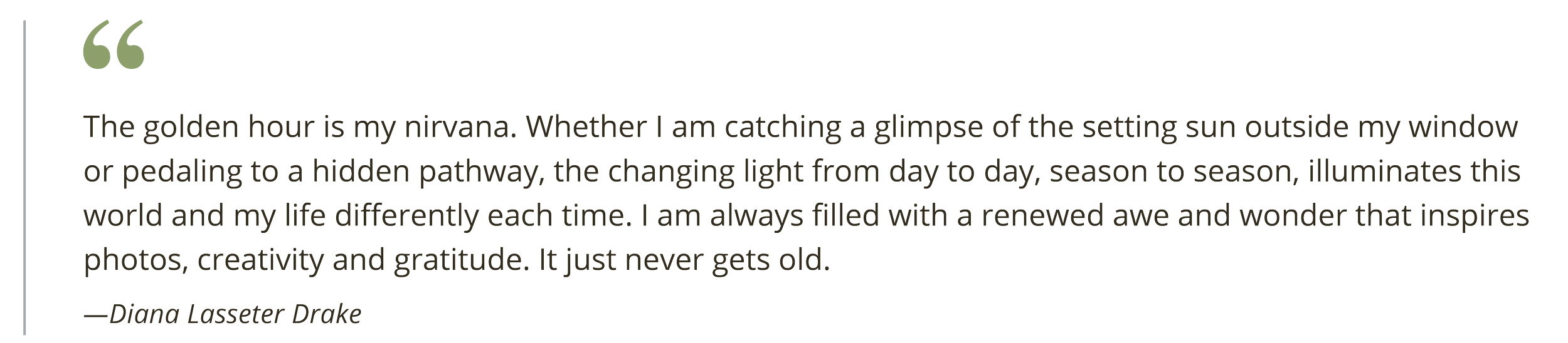 So often on my bike rides, I encounter deer watching me with fear and curiosity. More times than not, they bound away, white tails waving and bouncing. And other times, they lock in, alert and accepting of my intrusion. Perhaps that day’s grass, tinged in sunset, was particularly sweet. This is their world, and I am just passing through.